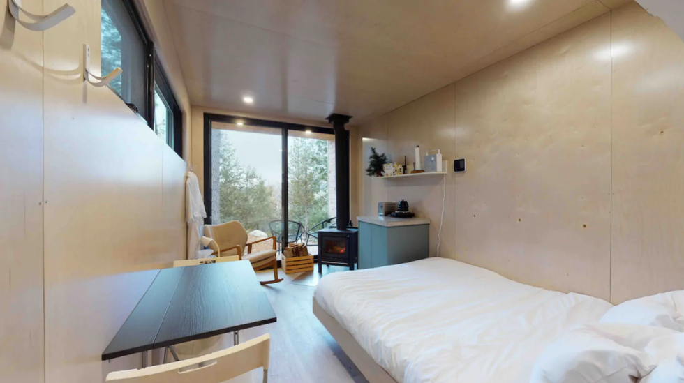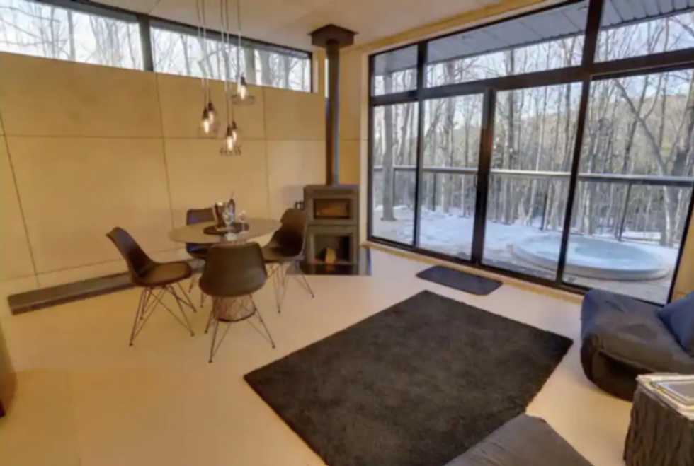 Pourquoi tu dois booker : À seulement quinze minutes d'Ottawa, ce mini chalet au bord de la rivière de Gatineau promet un moment apaisant avec la forêt autour et la possibilité de faire des feux dehors.