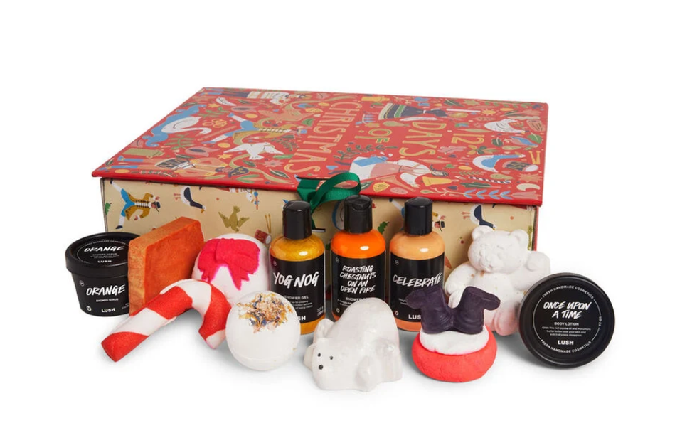 Détails : C'est un calendrier de 12 jours qu'offre la compagnie de cosmétiques faits à la main Lush, mais il peut bien être étendu sur 24 jours étant donné le format des produits qui peuvent, pour la plupart, être utilisés plusieurs fois pour se dorloter.