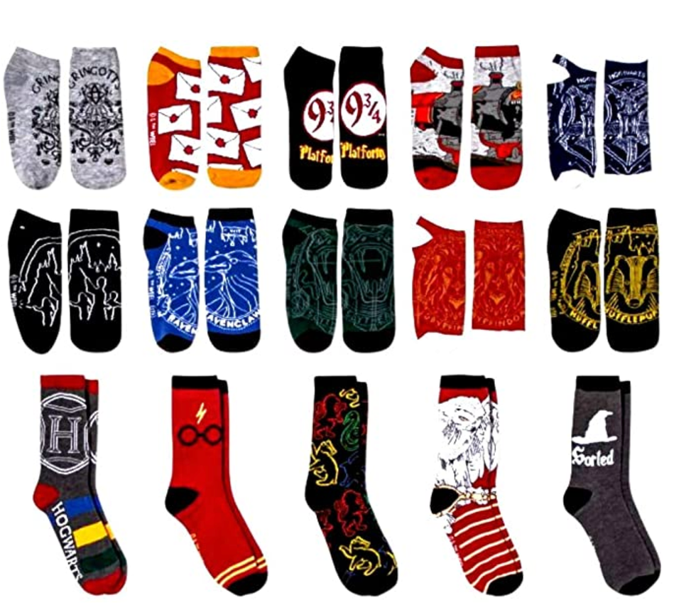 Détails : Ce calendrier comprend 10 paires de chaussettes à la cheville et 5 paires plus longues pour les vrais fans d'Harry Potter.