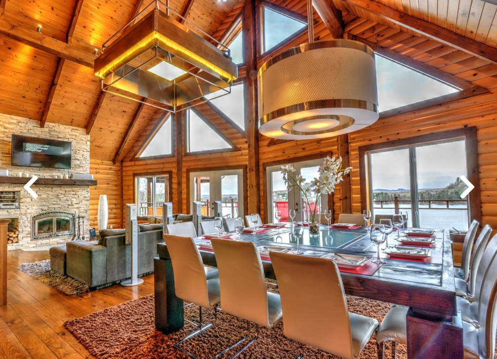 Pourquoi tu dois booker : Jusqu'à 16 personnes peuvent loger dans ce très grand chalet des Laurentides. Il se trouve sur le bord de l'eau ce qui vous permettra de vous rafraîchir quand la température sera chaude. 6 chambres composées de lits simples à kings sont disponibles. À vous de faire roche papier ciseaux pour savoir qui aura la plus grande chambre!