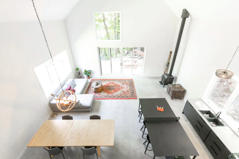 Pourquoi tu dois booker : Loin d'arborer le look conventionnel des chalets, cet hébergement épuré peut accueillir jusqu'à 9 personnes et tu ne voudras plus jamais quitter les lieux tellement c'est adorable.