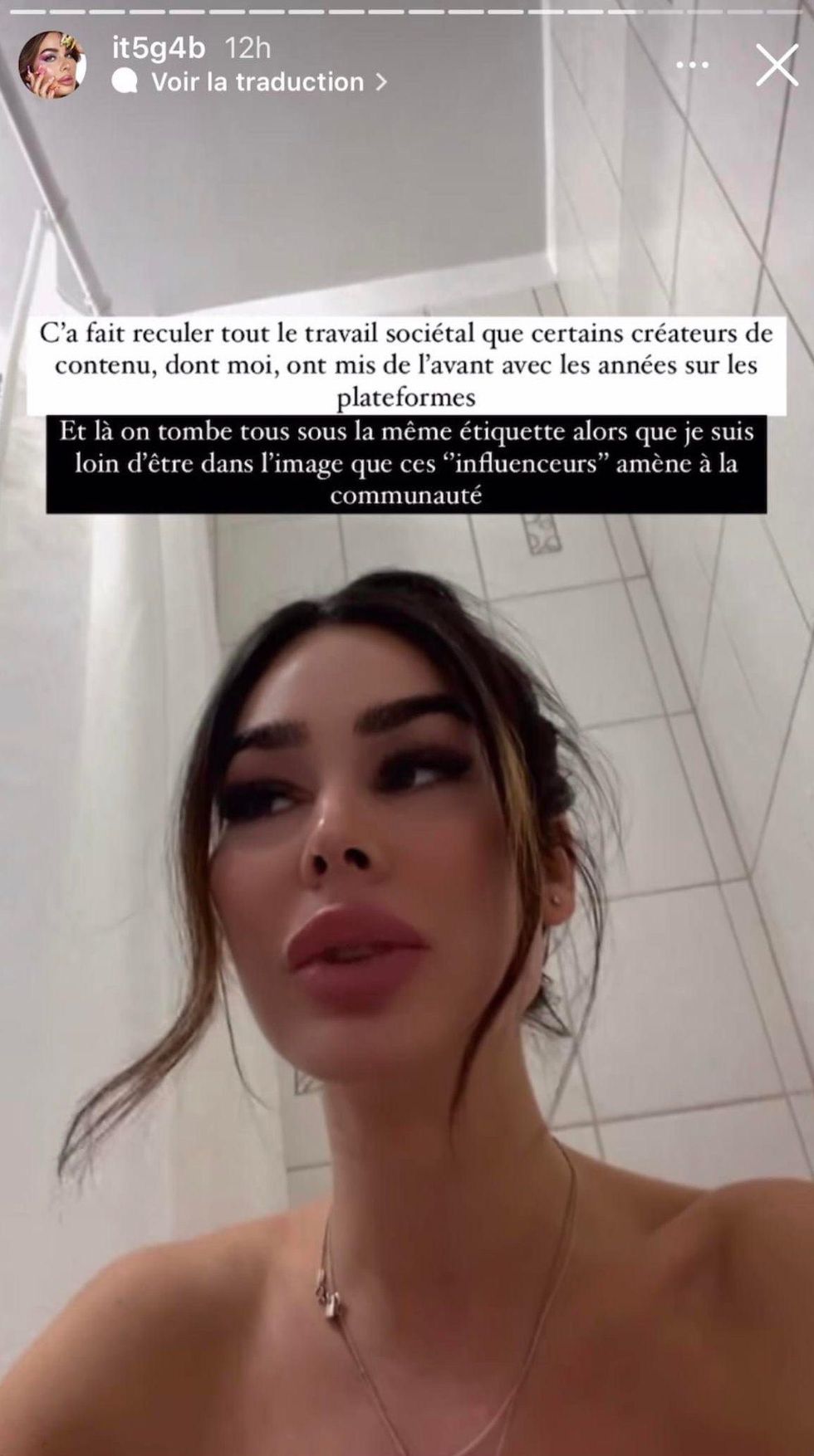 « Je ne vous cacherai pas qu'en ce moment, j'ai un peu honte puis c'est vraiment triste parce qu'en ce moment, ça donne tellement un review négatif des créateurs de contenu alors que ces gens-là ne sont pas considérés comme des créateurs de contenu. »