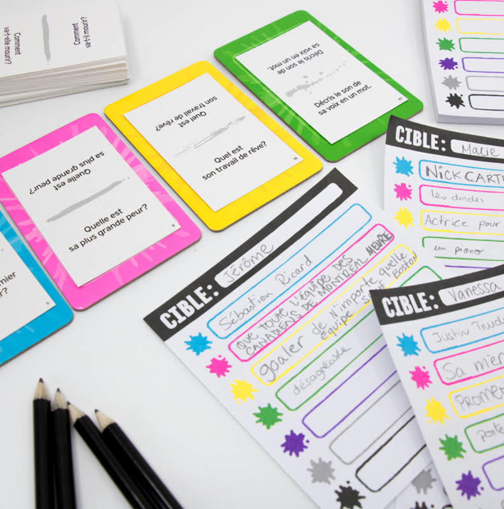 Rien de mieux qu'une partie de jeux de société avec tes personnes préférées pour faire d'un vendredi soir un brin ennuyant une soirée plus que réussie. Questions croustillantes, drôles de défis, débats enlevants, situations cocasses, ces jeux faits au Québec te promettent de mettre de l'ambiance dans ton prochain souper entre ami.es ou bien même lors de ta prochaine date.