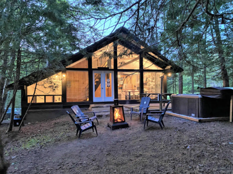 Pourquoi tu dois booker : À un peu plus d'une heure de Montréal, ce chalet tout équipé te permettra de décrocher à 100 % de la routine. En plus, il y a des escaliers qui mènent vers une plage juste à côté.