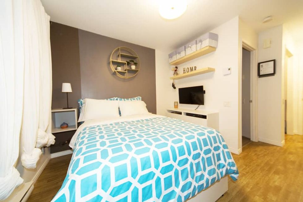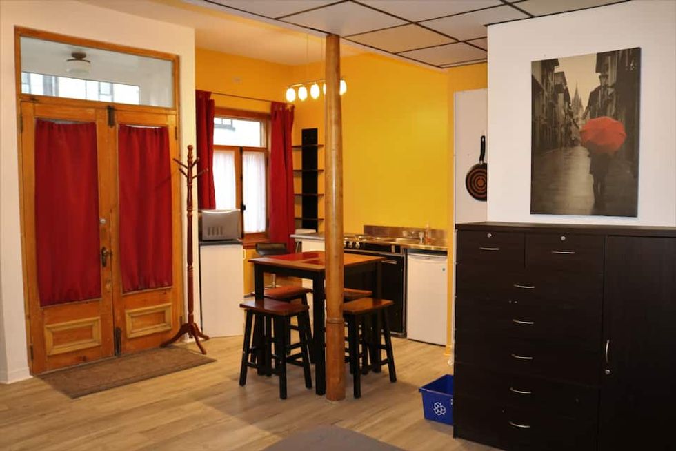 Pourquoi tu dois booker : Le studio, fraîchement rénové, offre à ton couple un endroit de repos moderne où toutes les commodités sont à votre disposition: cuisine, salle de bain, chambre bien aménagée et balcon. C'est le moment d'ouvrir une bouteille de vin, de se faire un bon repas et de le déguster sur la terrasse du balcon, non loin du centre-ville de la magnifique ville de Québec.