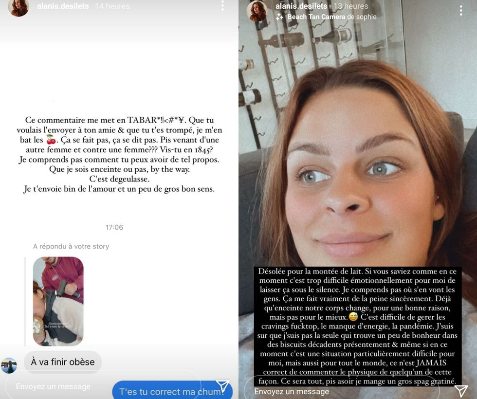 En story partagée sur Instagram le 18 avril, Alanis Desilets a dénoncé un commentaire fait par une internaute sur son corps.