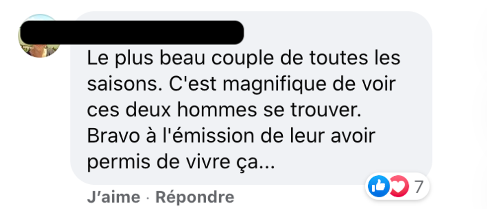 Sur Facebook, le public de l'émission est touché de voir qu'une aussi forte connexion se crée entre les deux hommes et plusieurs reconnaissent la puissance d'un coup de foudre.