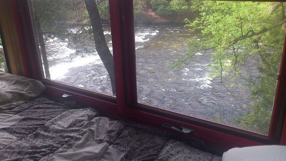 Pourquoi tu dois booker : Construite au-dessus de la rivière Mississipi, cette maison te charmera par le son du cours d'eau et le côté chaleureux de l'intérieur. Elle se trouve à 2 h 15 de Montréal, mais ça vaut le détour.