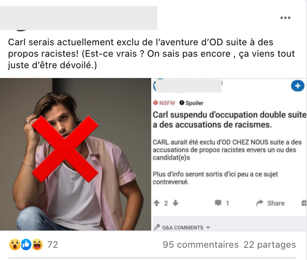 Une rumeur circule présentement sur les réseaux sociaux au sujet de Carl, l'un des participants à Occupation Double. Eh bien la production d'OD Chez Nous a nié cette dernière, voulant qu'il ait été retiré suite à des propos envers d'autres candidats.