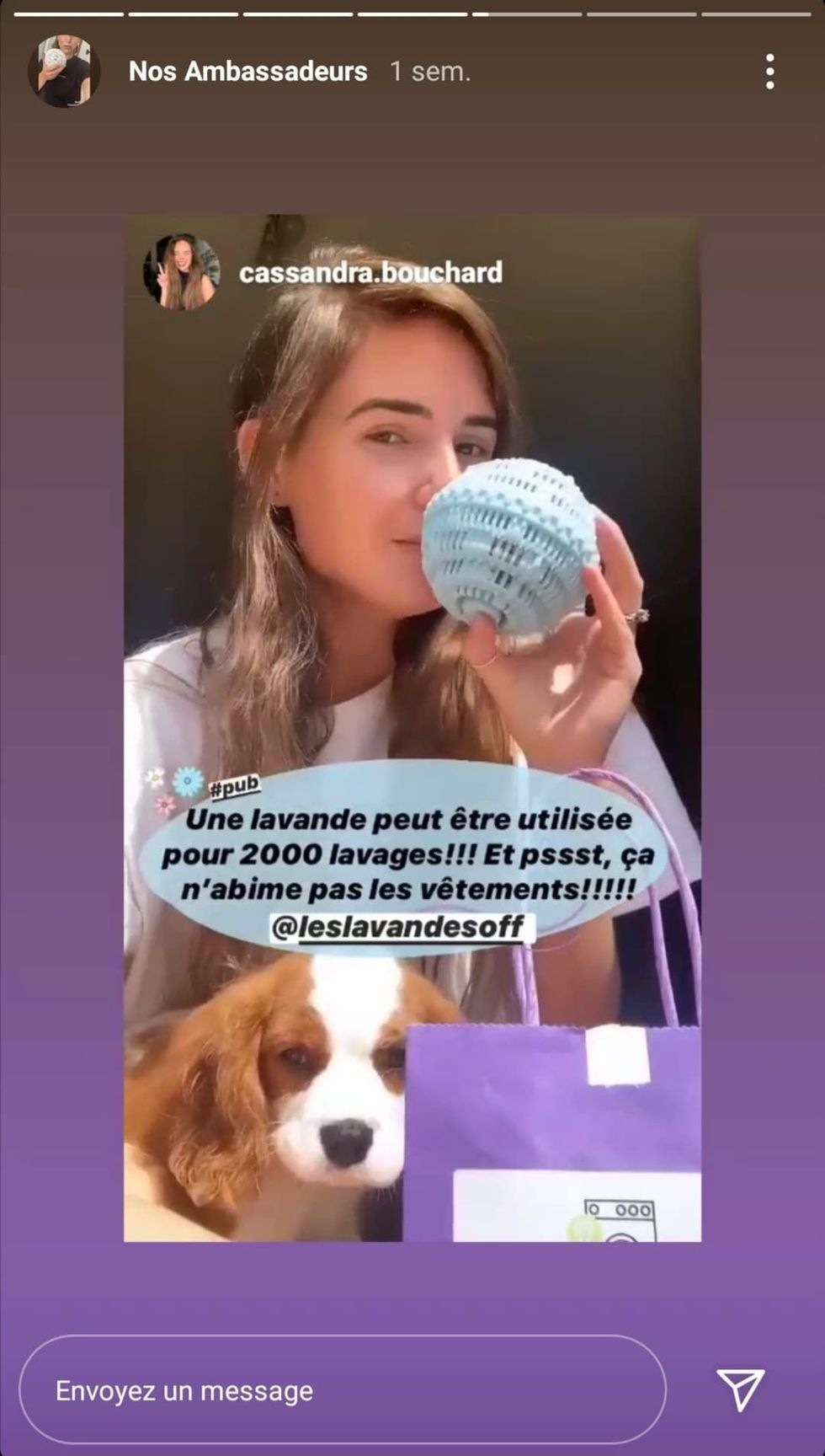C'est en story Instagram que les deux influenceuses avaient partagé une promotion au sujet de la compagnie Les Lavandes, une start-up située à Montréal qui promeut des boules sans composantes chimiques qui permettent de faire jusqu'à 2 000 lavages, selon leur site Web.