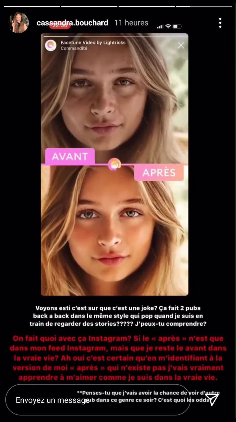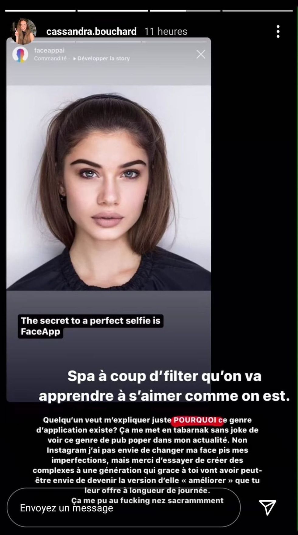 Cassandra Bouchard s'emporte contre toutes les applications « Photoshop » de ce monde
