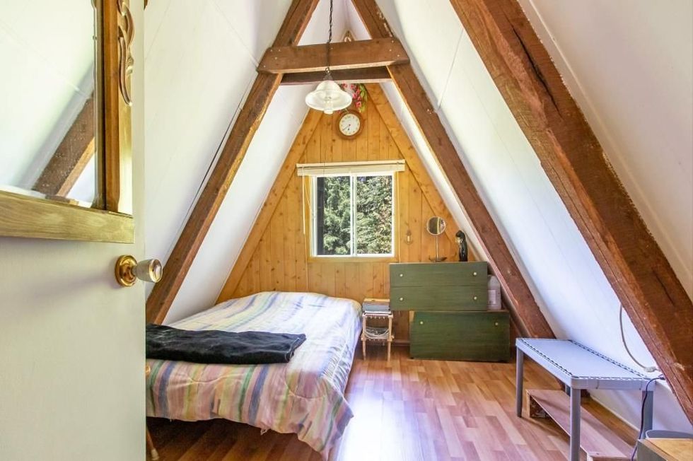 Avec son architecture particulière, on peut presque dire qu’il s’agit d’une tiny house et ce chalet a tout ce qu’il faut pour être transformé en un endroit complètement Pinterest.
