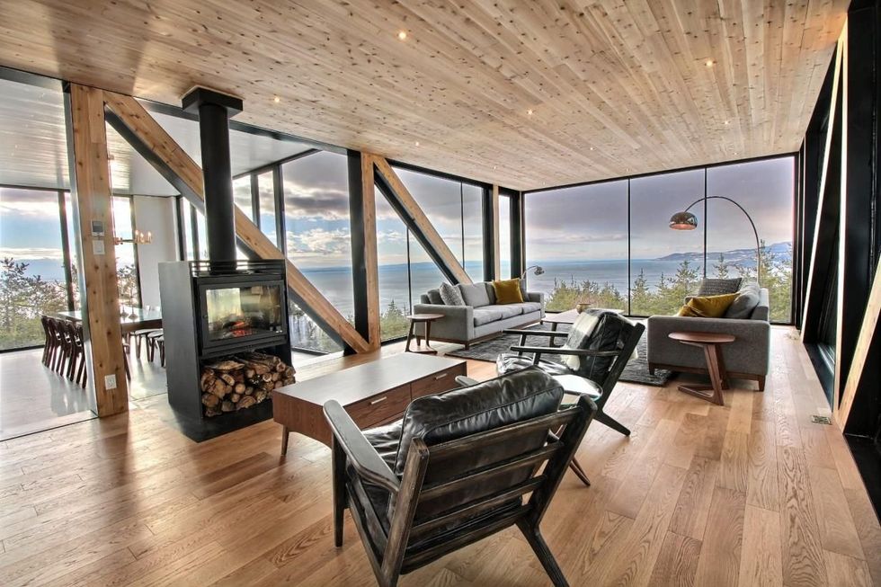Ce chalet de 1,2 M$ à La Malbaie a un salon suspendu avec une vue magnifique sur le fleuve