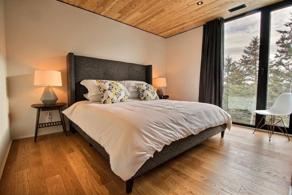 Avec ses montagnes, ses vallées et l'estuaire du Saint-Laurent, la région du Charlevoix offre parmi les plus beaux panoramas de la province. Ce chalet de La Malbaie a un salon suspendu qui te permet de profiter de cette vue magnifique.