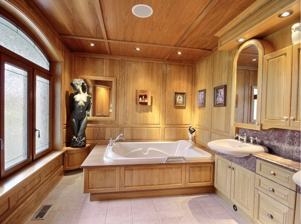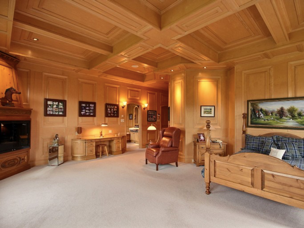 Ce manoir comprend trois chambres et celle des maîtres est particulièrement magnifique, avec ses murs en bois d'érable, son foyer et son propre walk-in.