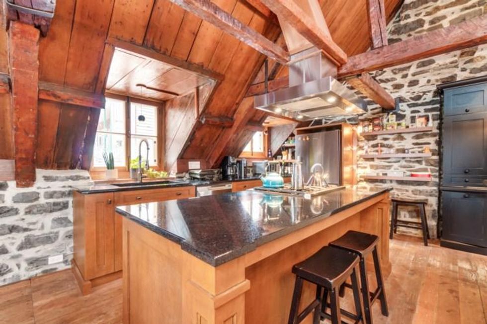 La ville de Québec ainsi que ses alentours regorgent de bâtiments centenaires qui font le charme de la région et cette maison à vendre pour 1 025 000 $ n'en fait pas exception avec son extérieur vieillot ainsi que son intérieur parfaitement rustique.