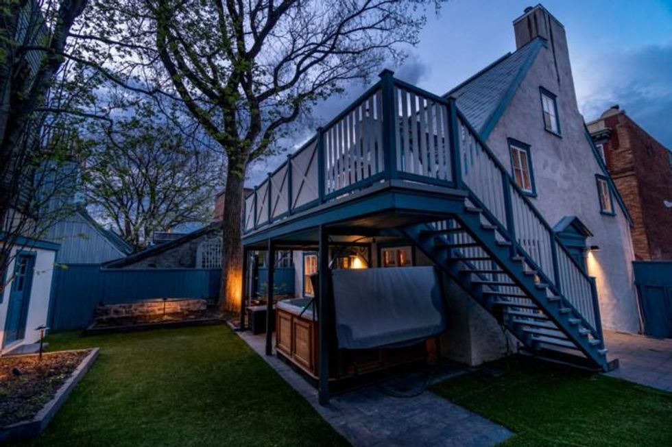 La propriété comprend deux terrasses ainsi qu'une mignonne cour arrière, ce qui est parfait pour se reposer en été. Fait très intéressant : la maison vient avec le frigo, le spa ainsi que le poêle au gaz.