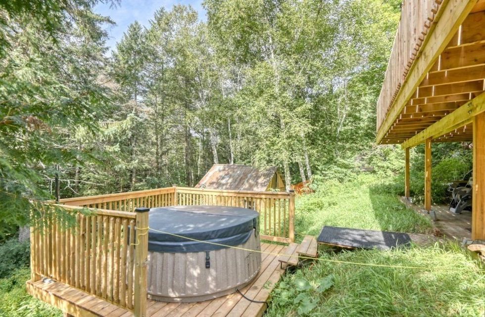 La petite maison jaune vient avec une cour arrière qui est en fait un véritable havre de paix en nature, avec un spa et en masse d'espace pour apprécier l'environnement et l'air pur.