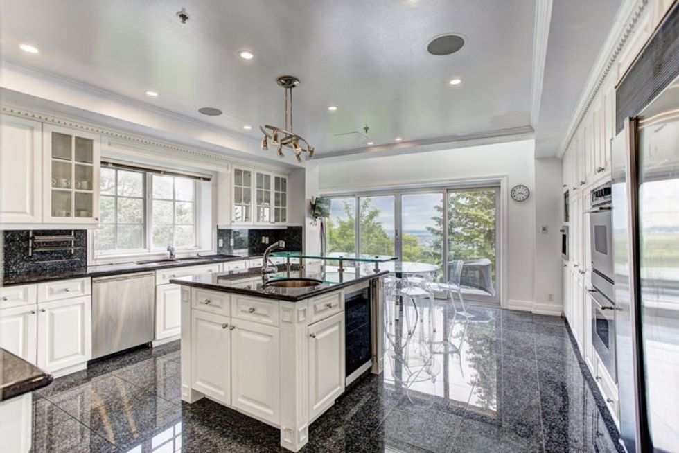 Les contraste créés par les touches de noir, de gris et de blanc dans les différentes pièces, dont la cuisine, rendent l'endroit tout simplement manifique et élégant.