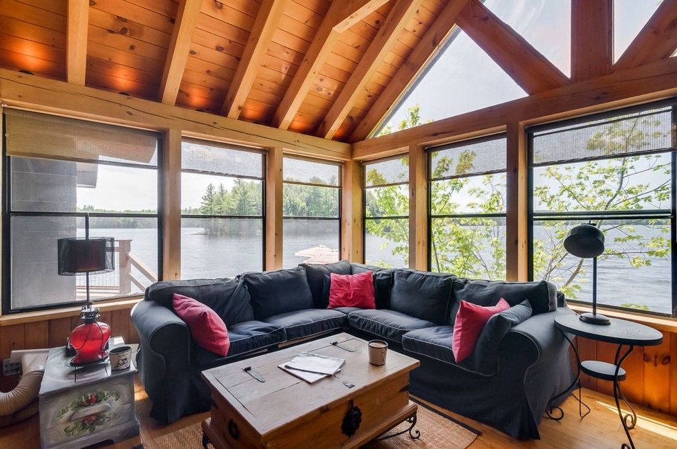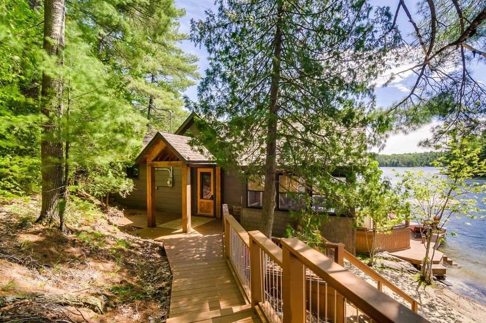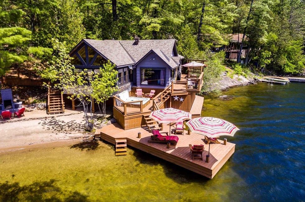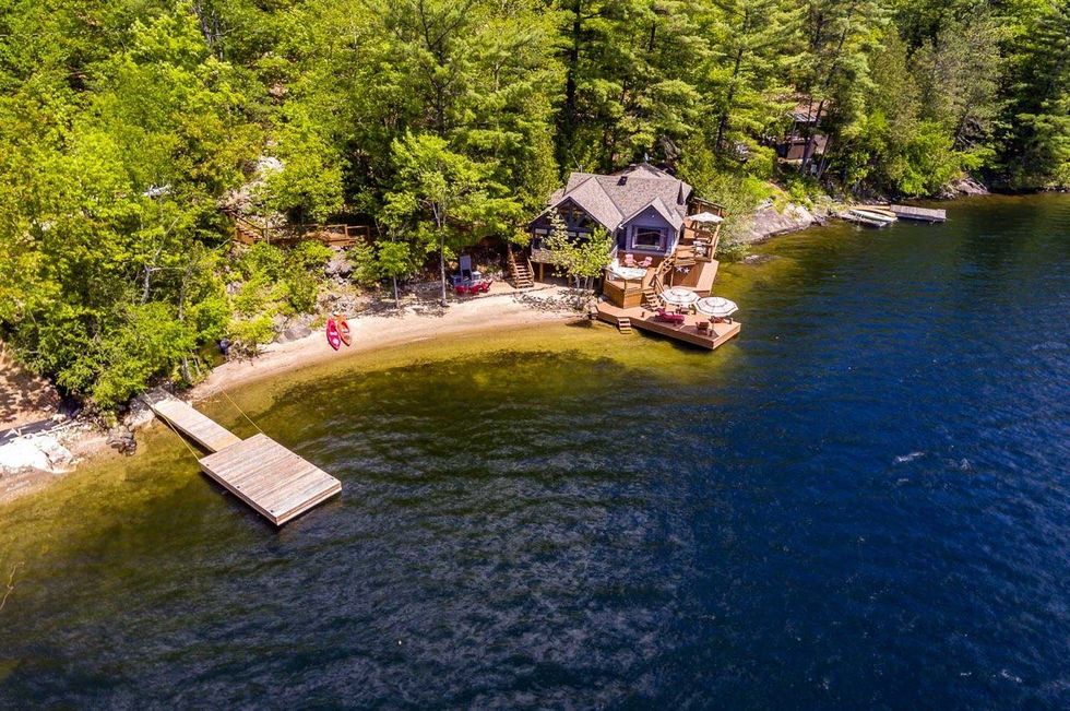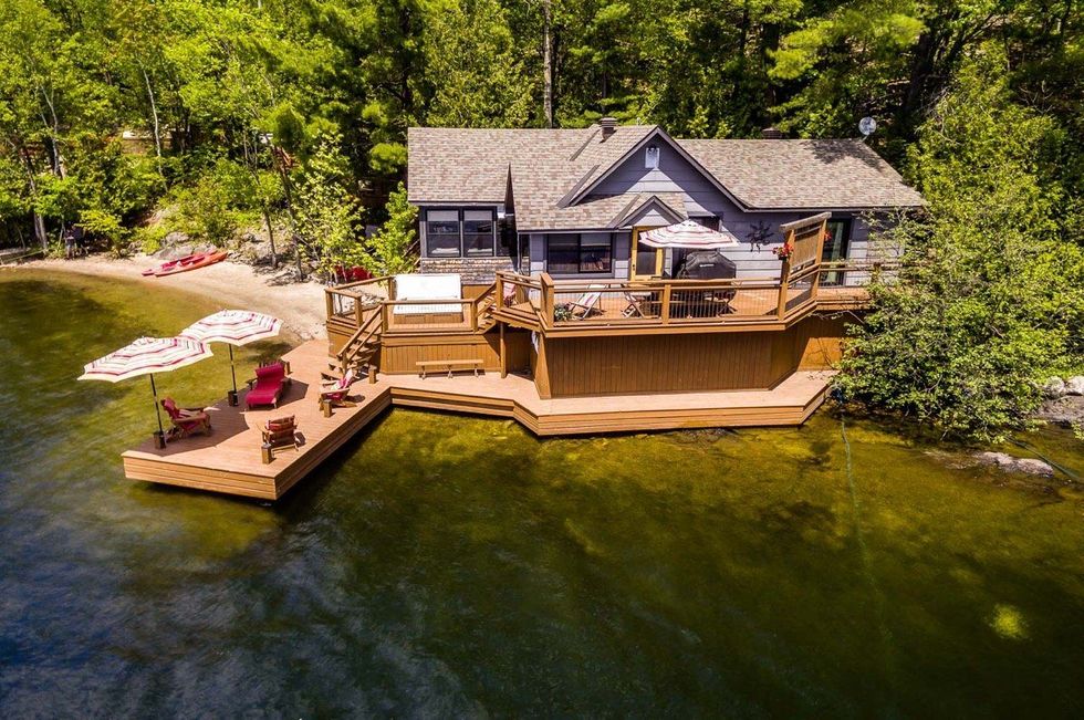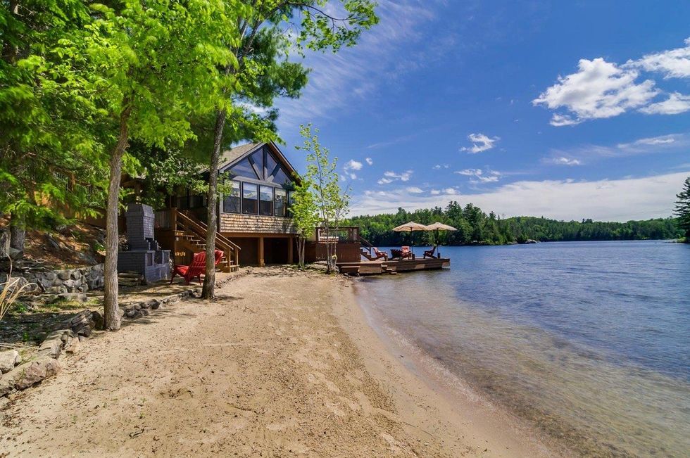 Ce chalet près de Gatineau a sa propre plage et une terrasse directement sur l'eau
