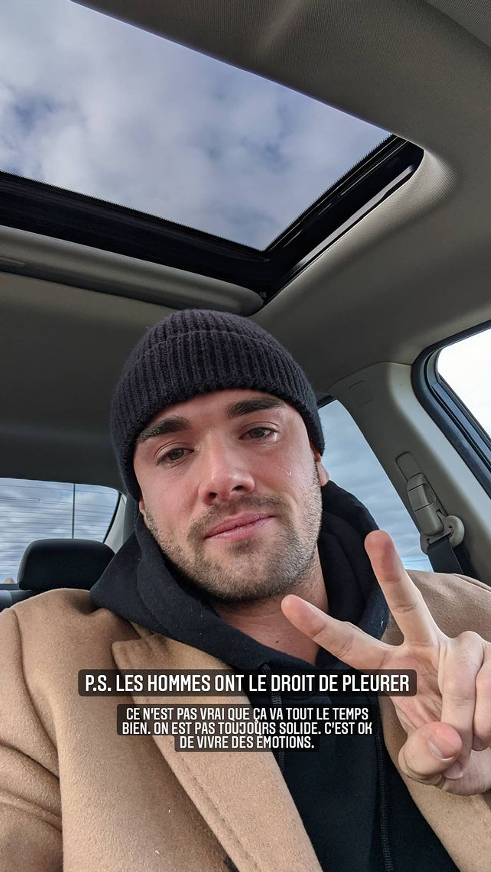 Les yeux pleins d'eau, il a publié une photo qui rappelle que les hommes aussi ont droit de pleurer et vivre leurs émotions.