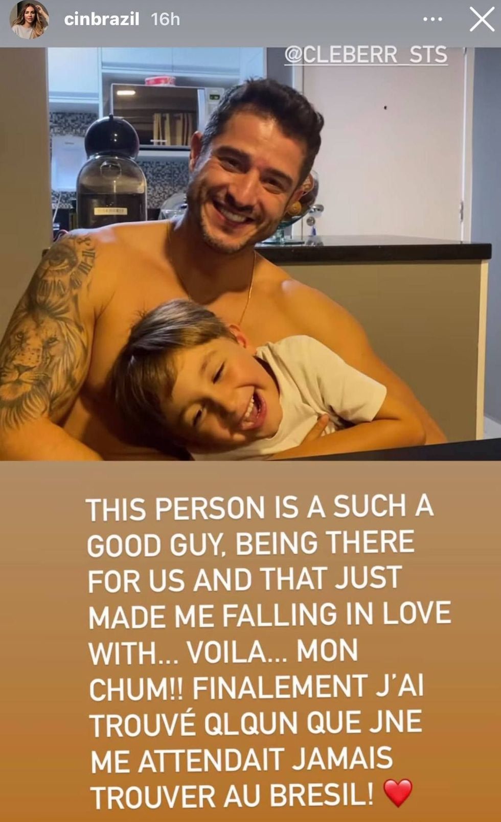 Dans une story qui le montre en compagnie de Leo, le fils de Cintia, elle présente l'homme âgé de 40 ans comme étant son chum.