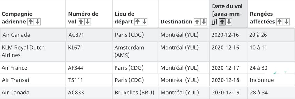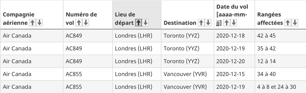Sur le site du gouvernement du Canada, on constate que cinq vols avec des cas confirmés en provenance de la capitale anglaise sont arrivés au Canada entre le 15 et le 21 décembre.
