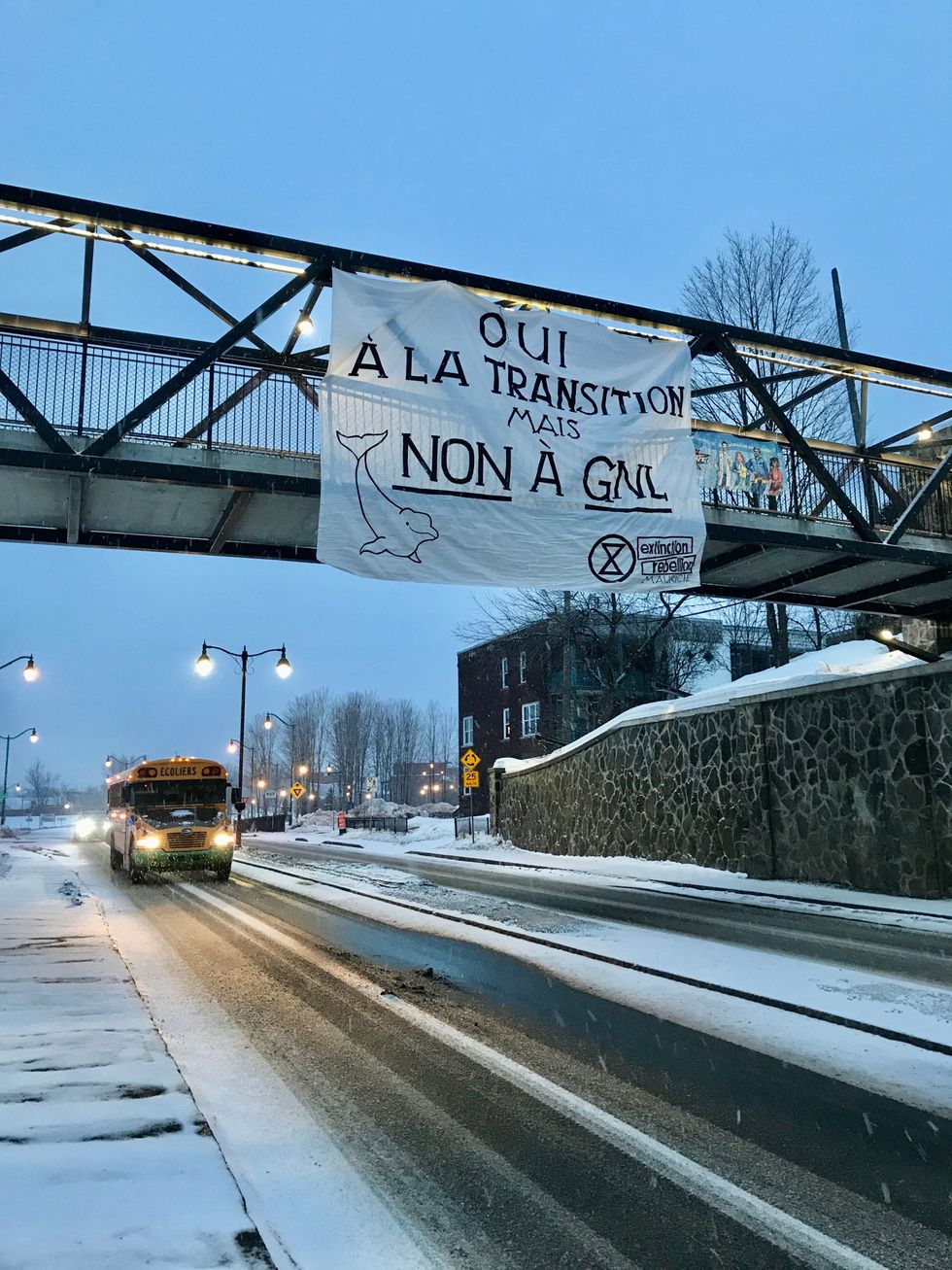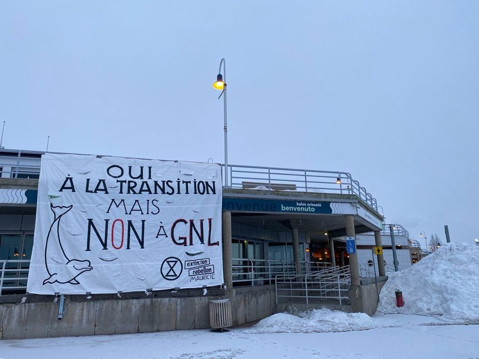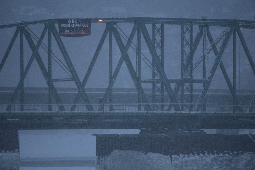 Voici pourquoi d'énormes bannières contre Legault et le projet GNL sont apparues au Québec