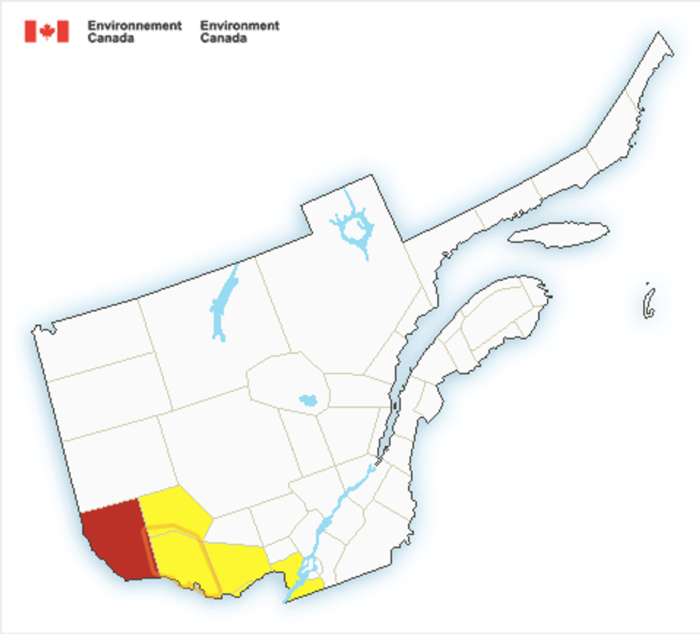 Dans certaines régions, Environnement Canada affirme que les orages violents pourraient même produire de la grêle pouvant atteindre la taille d'une pièce de cinq cents.