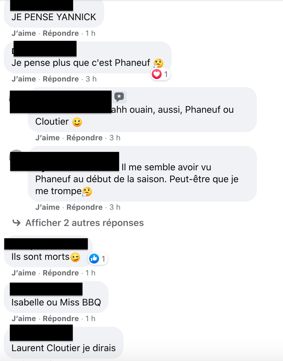 Nadine Legrand, Jeff Morin, Christian Phaneuf, Laurent Cloutier ou encore Virginie Francoeur : les fans suspectent tous les personnages disparus de revenir d'ici la finale, même ceux qui sont morts.