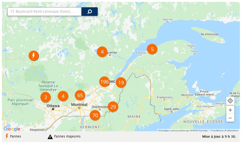 L’état du réseau d’Hydro-Québec enregistrait, à 9 h 30 le 5 août, près de 400 pannes d’électricité.