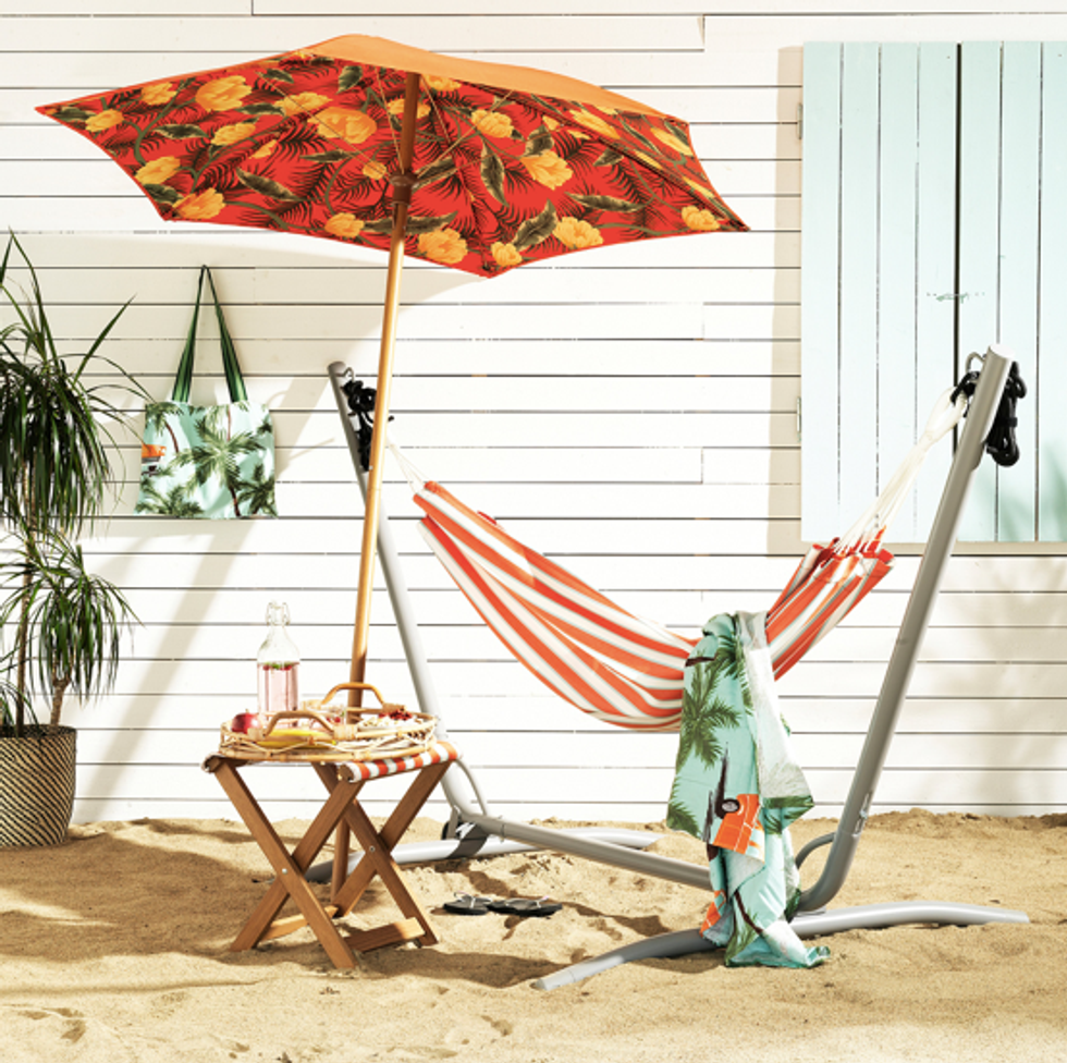 Détails : Tu as vu le beau parasol? Tu pourrais tout aussi bien l'installer dans ta cours qu'à la plage. Disponible dans deux styles.