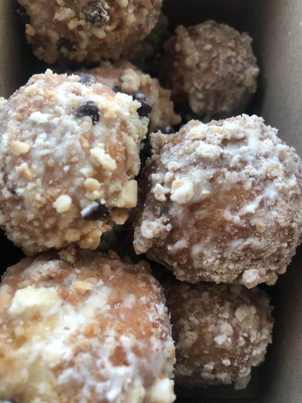 La première différence avec les Timbits traditionnels se voit à l'œil nu. Toutes les saveurs ont une garniture généreuse de sucrerie, ce qui vient ajouter un côté croquant à la pâtisserie quand tu l'as sous la dent.