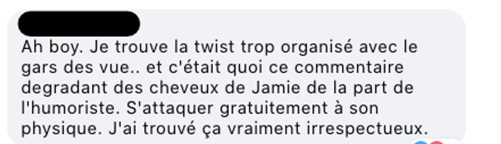 C’est l'humoriste Christine Morency qui s’est permise de faire une « blague » sur l’apparence de Jamie, et cela n’a pas bien passé auprès de certains téléspectateurs.