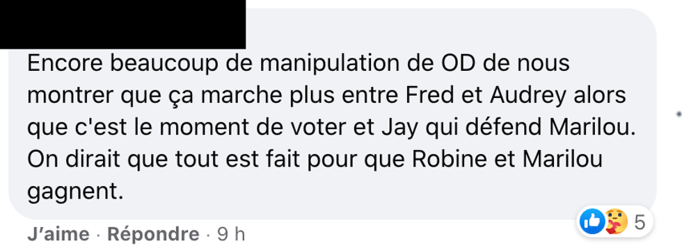 Certain.es soupçonnent que la production souhaite montrer le couple d'Audrey et Fred sous un mauvais jour afin que le public vote plutôt pour Marilou et Robin.