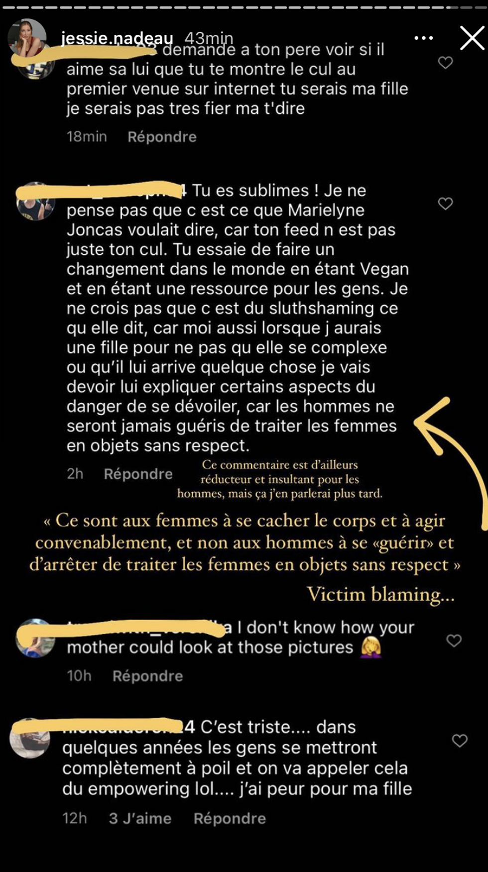 Suite à cette publication, Jessie a également partagé une story soulignant le fait que selon elle, les commentaires sous l'image démontrent une certaine évolution dans les perceptions des gens sur le droit des femmes sur leurs corps.