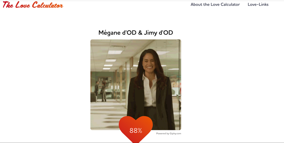 Il est évident que le simple fait d'aimer la culture country et les chevaux ne garantit pas un match parfait, mais histoire de s'amuser, on a tout de même entré les noms de ces deux candidat.es sur le site The Love Calculator pour savoir quel pourcentage de réussite serait généré.