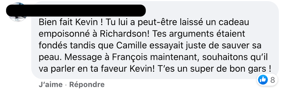 D'autres téléspectateurs sont cependant du même avis que Kevin, affirmant qu'il devrait gagner quelque chose, mais ne sont pas d'accord avec le fait qu'il s'emporte et qu'il se mette d'autres participants à dos suite à sa réaction.