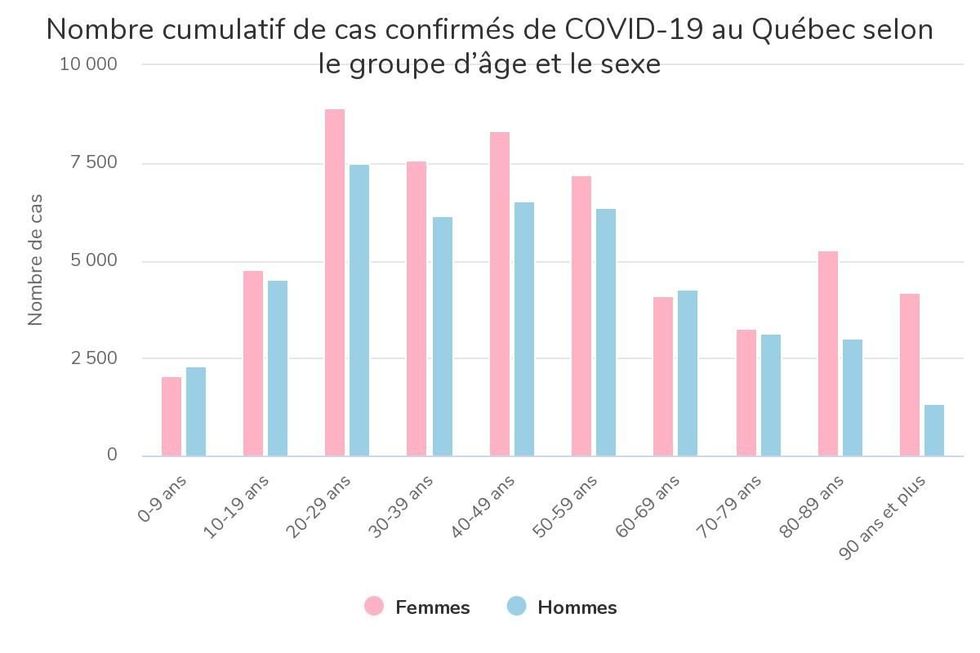 Derrière chaque nouveau test positif au nouveau coronavirus au Québec se cache une personne. Il semble que plus de la moitié des cas de COVID-19 au Québec soit des femmes.