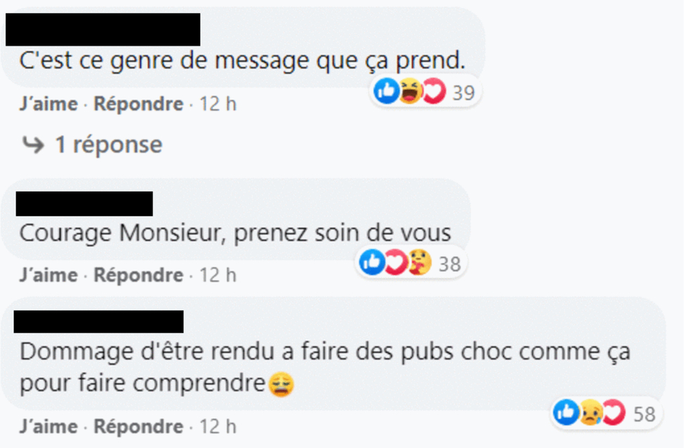 Sur les réseaux sociaux, plusieurs saluent la publicité-choc du gouvernement et envoie du courage au survivant.