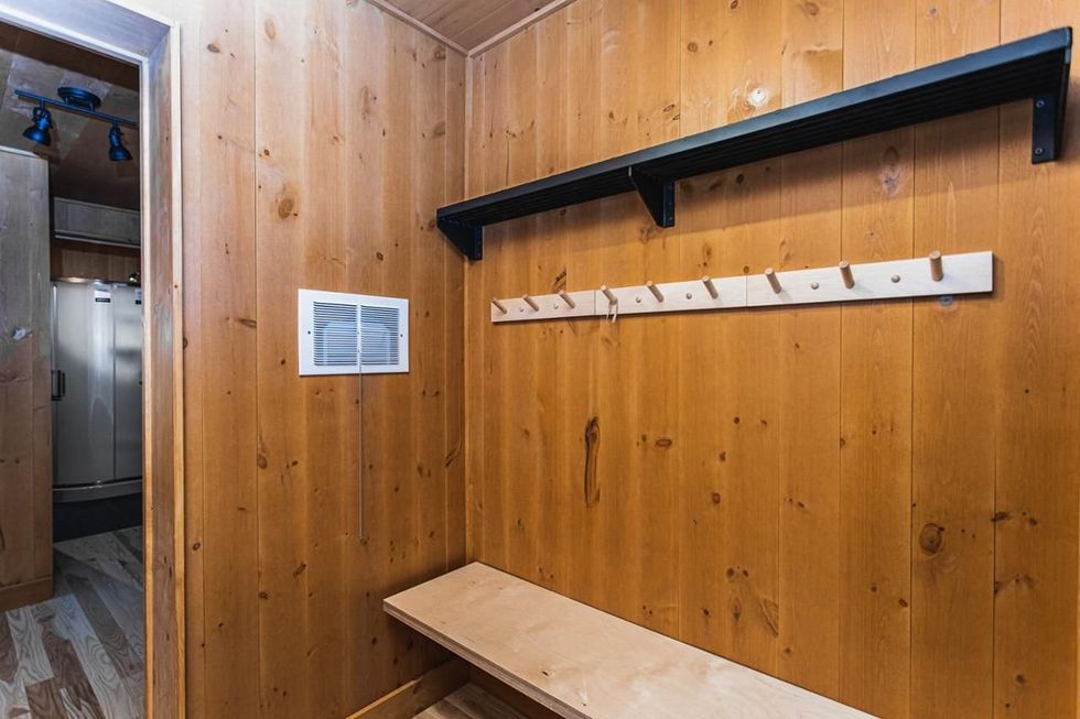 Il y a également un hall d'entrée fermé, qui permet d'y laisser son équipement de pêche, de chasse ou de randonnée.