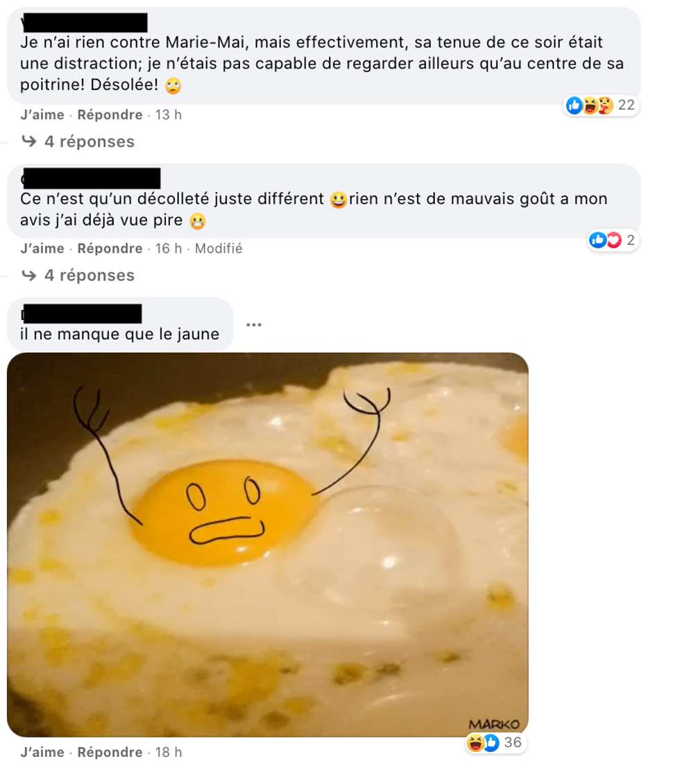 Les avis sur la tenue de Marie-Mai sont assez partagés. Si ce n'est pas rare de voir des animatrices avec des looks éclatés et uniques — pensons à Julie Snyder au Banquier — les fans semblent toujours aussi surpris.
