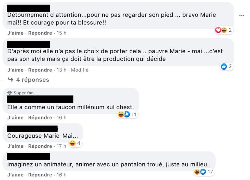 Si certains pensent que c'est pour détourner l'attention, d'autres expliquent que c'est simplement le choix du styliste et non de Marie-Mai.