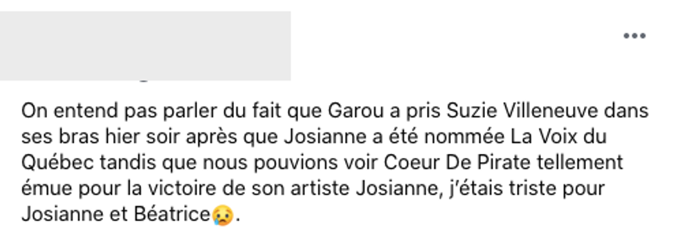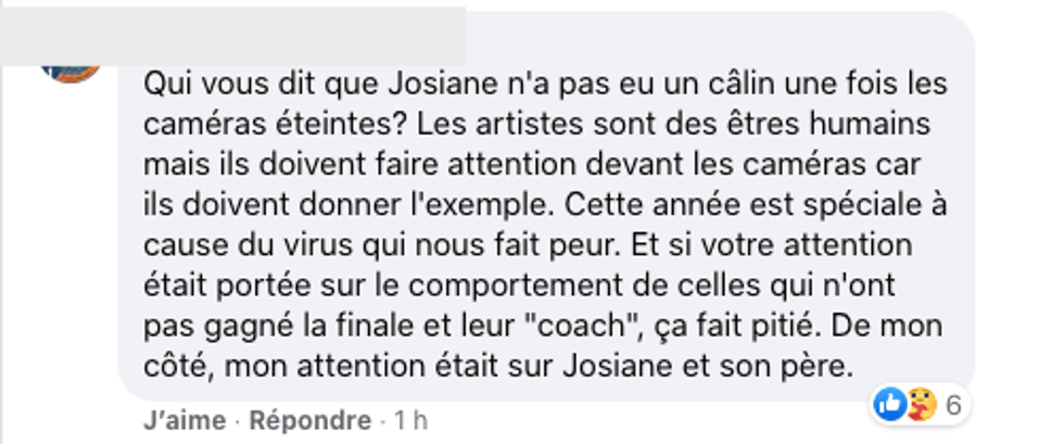 Certains indiquent aussi que les règlements n'ont pas été respectés et que ça n'aurait pas dû se passer ainsi, surtout lorsqu'on prend en compte la réaction de Coeur de pirate lors de la victoire de Josiane, qui a suscité un malaise en raison de la distance.