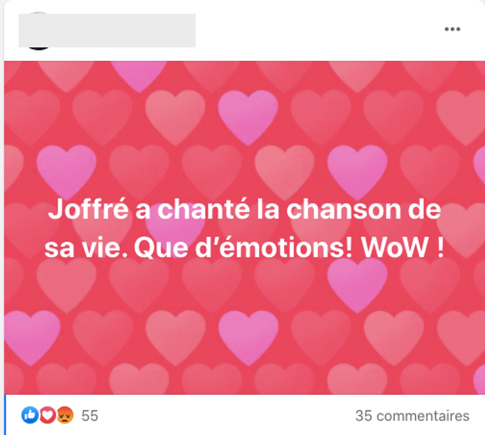 Le premier numéro de la soirée par Joffré Charles, dans la team Marc Dupré, assisté par ses talents au piano, a bien ému le Québec et ce dernier est déçu de le voir quitter l'aventure.
