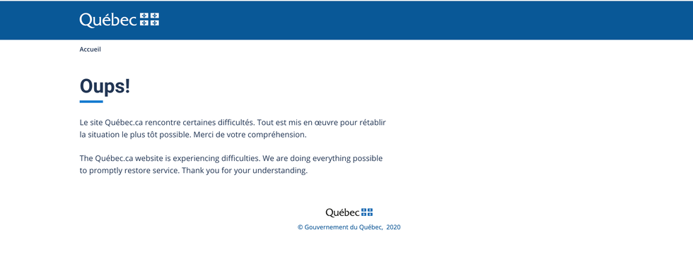 « Oups! Le site Québec.ca rencontre certaines difficultés », pouvait-on lire.