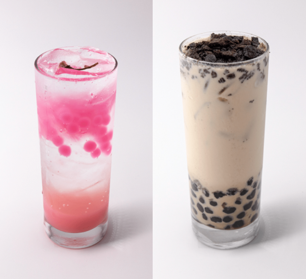 Parmi celles-ci on retrouve le classique thé latté au sucre brun One Babo Milk Tea, mais aussi des créations plus funky comme le Oreo Milk Tea, une création à base de thé latté classique à saveur d'Oreo, ou même la Sakura Sparkling Pink Lemonade une limonade rose à l'aloès.