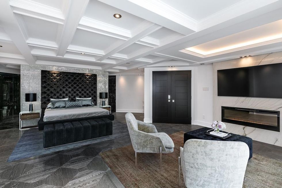 En plus de l'allure luxueuse des cinq autres chambres à coucher et du boudoir qui peut être utilisé comme salle d'entraînement, la chambre principale reste la pièce de résistance avec son foyer encastré et l'accès à une grande terrasse avec vue sur le bord de l'eau.