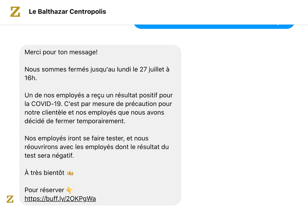 « C'est par mesure de précaution pour notre clientèle et nos employés que nous avons décidé de fermer temporairement », peut-on lire dans un message automatisé du Balthazar sur la messagerie Facebook.