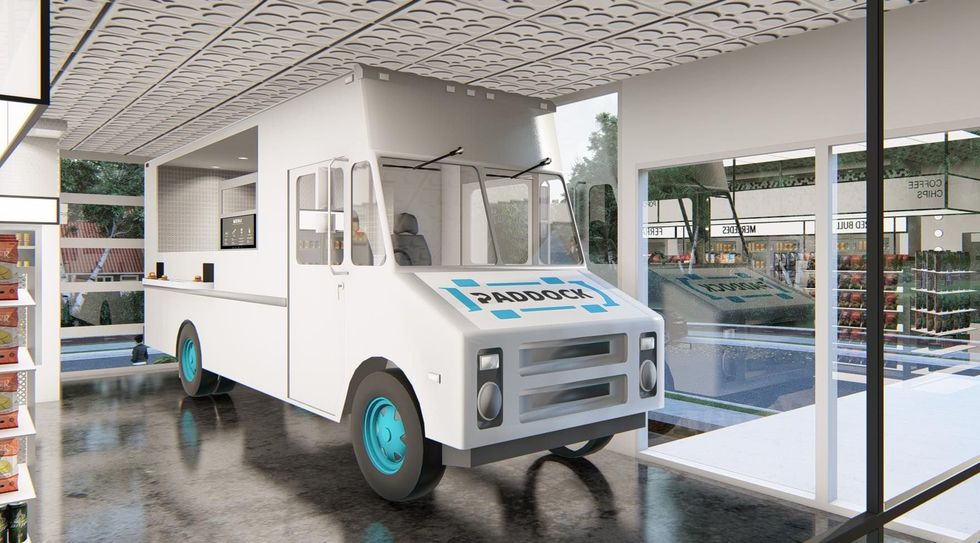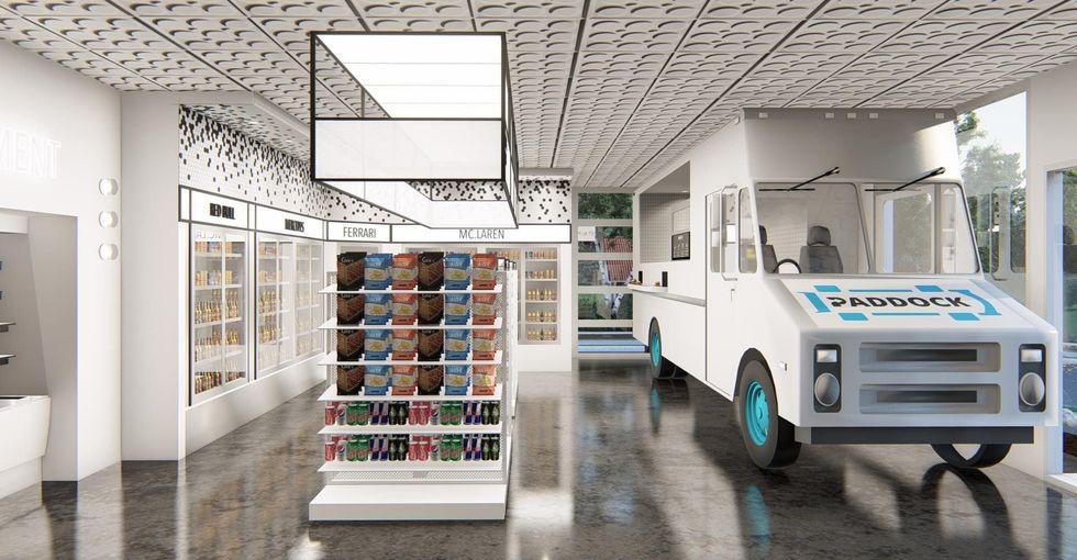 Le Paddock sera donc un endroit de ravitaillement avec bien entendu une station d'essence, mais aussi des bornes pour les voitures électriques, un food truck offrant un menu raffiné, une terrasse et plus encore.